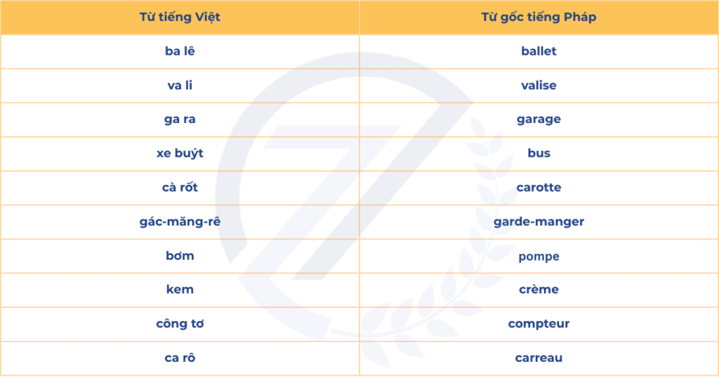 20 từ mượn tiếng Pháp trong tiếng Việt
