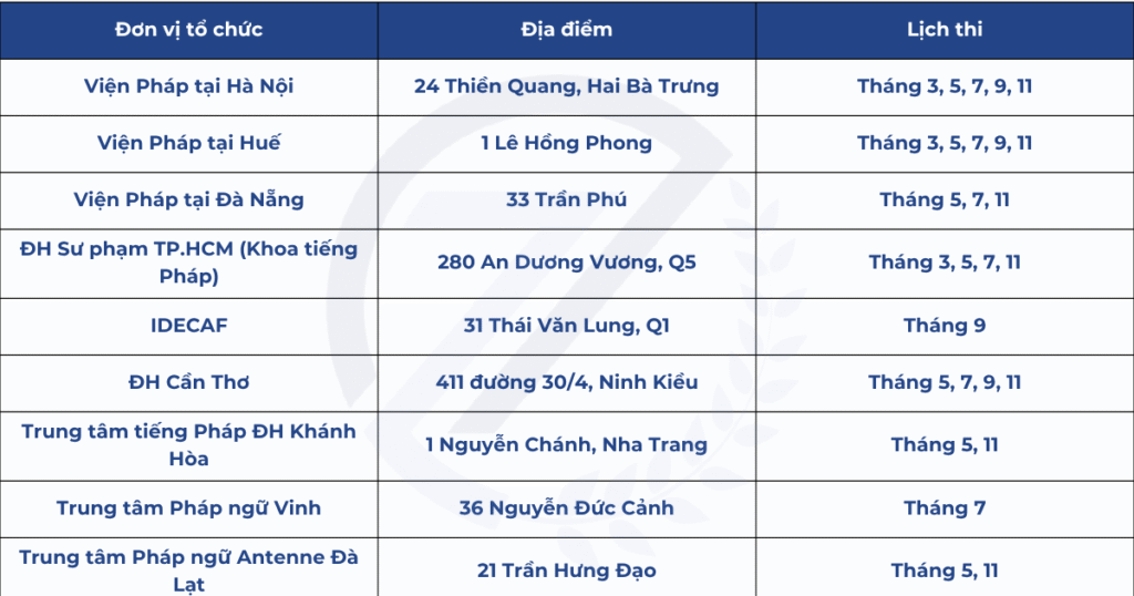 Địa điểm thi DELF – DALF  Tout Public  2026 tại Việt Nam