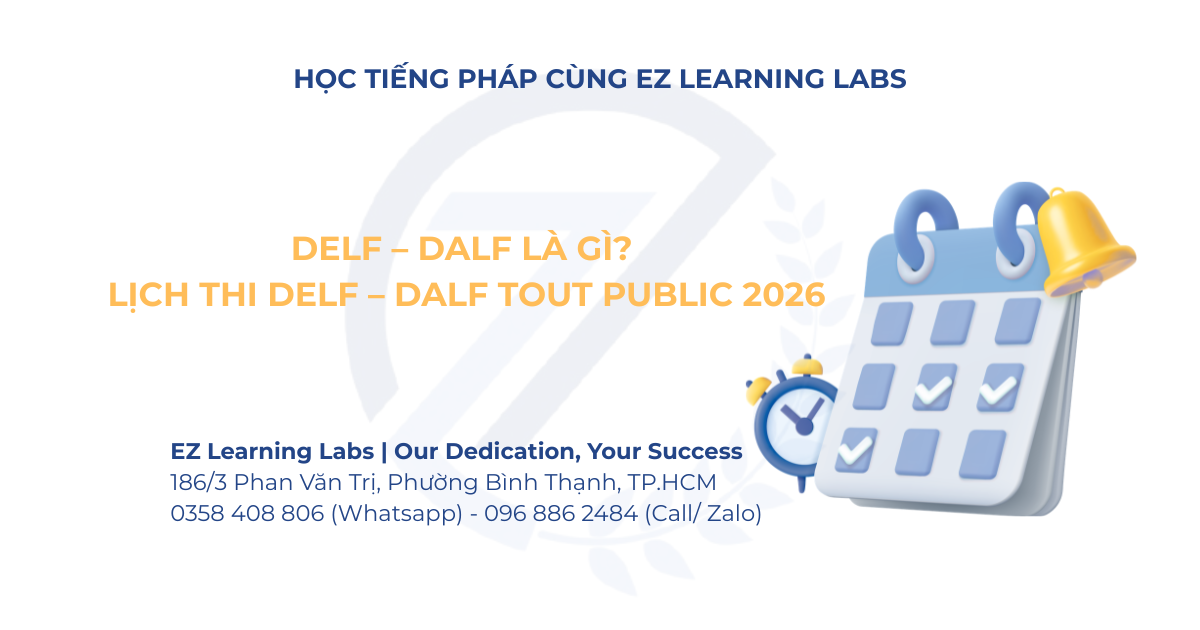 Nếu bạn đang học tiếng Pháp, chắc hẳn đã từng nghe đến bằng DELF – DALF. Đây là những chứng chỉ tiếng Pháp quốc tế rất phổ biến, được người học lựa chọn để đánh giá trình độ ngôn ngữ của mình. Vậy bằng DELF – DALF là gì và lịch thi DELF – DALF Tout Public năm 2026 như thế nào? Cùng EZ Learning Labs tìm hiểu ngay nhé!