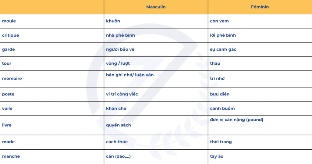 Như vậy, chỉ cần thay đổi giống đực hoặc giống cái, nghĩa của từ trong tiếng Pháp cũng có thể khác hoàn toàn. Vì thế, khi học từ vựng, đừng quên ghi nhớ luôn giống của danh từ để sử dụng đúng và tự nhiên hơn.